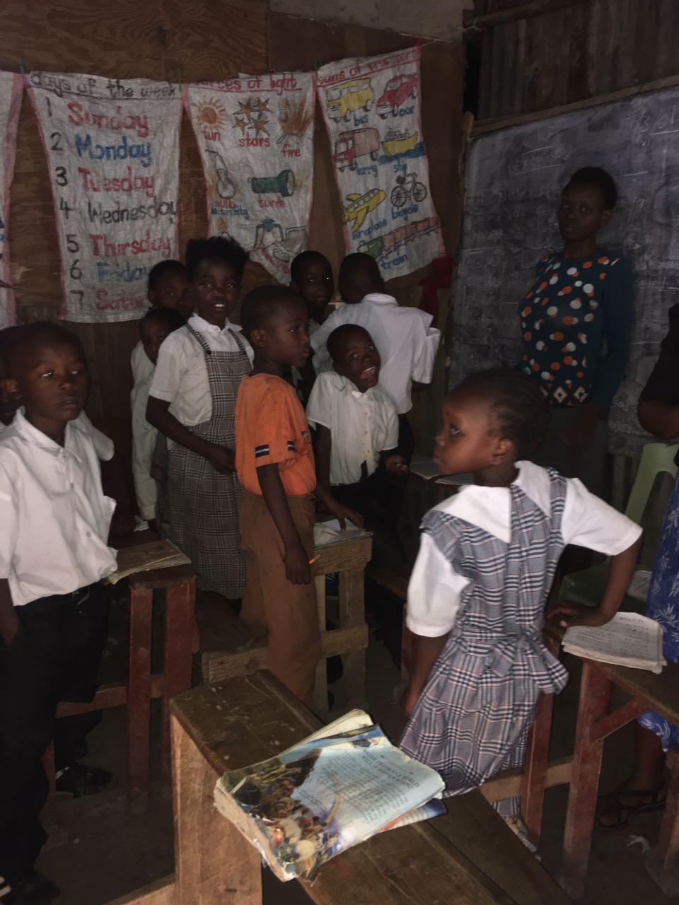 The school has two classes, the first class has baby class, pre-unit and nursery, all combined and has one teacher, who is supposed to ensure they all learn. The 2nd class has class 1, 2, 3 and 4 and two teachers, so the 6 years old is in the same class with the 10 years old. By our standards we can classify these kids as disadvantaged, yet their parents work very hard to afford the school fees, 500/= per term. They know and believe that education is the only way to their kids can get out of this slum. The kids want to be pilots, so that they can fly far and high from the open sewers, from the mabati houses. They know that they deserve better and they are working towards it.